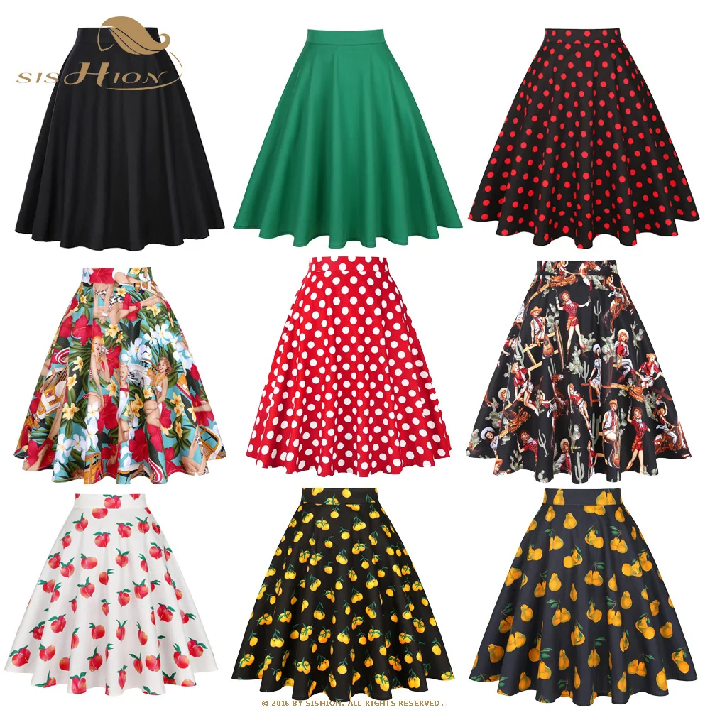 Юбка-миди Женская хлопковая в горошек, с цветочным принтом, с завышенной талией, черная, летняя, размера плюс