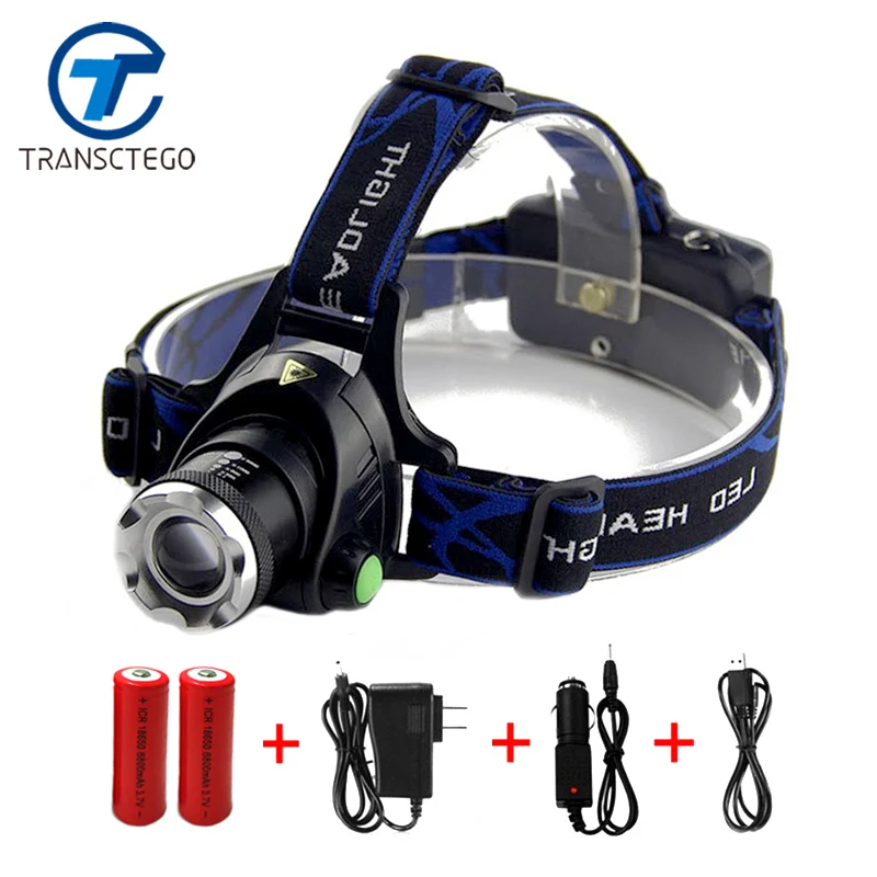Светодиодный головной фонарь T6, налобный фонарь высокой мощности с аккумулятором 18650, 18650