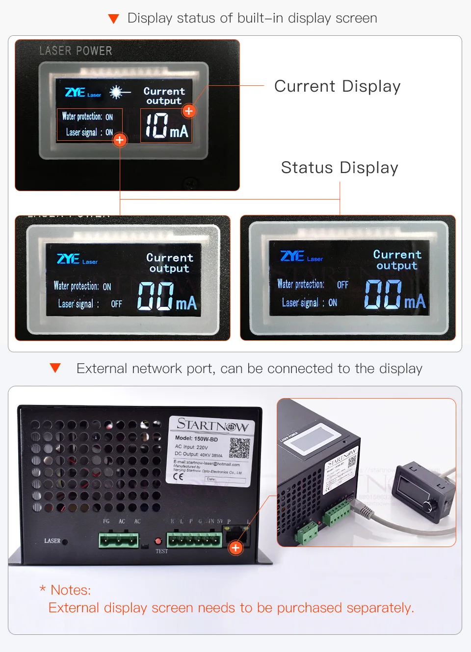 Startnow 150W-BD CO2 лазерный источник питания с экраном дисплея 150 Вт 220 В 110 В для лазерного устройства резак оборудование Запчасти MYJG-150
