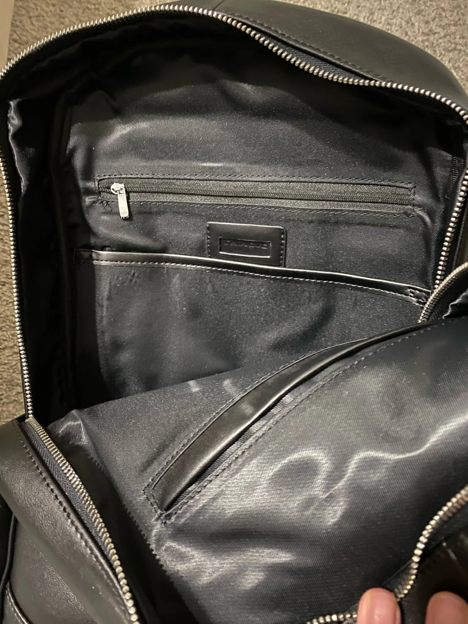 Отличный рюкзак. Качество превосходное, швы ровные, нитки не торчат, сшит очень хорошо. смотрится очень дорого. Кожаный. Внутри три кармана, один на молнии, подкладка качественная. Форму держит. Рюкзак был упакован в пузырчатую пленку, потом пыльник, а внутри надувные пакеты, поэтому рюкзак пришёл не помятый, за это огромное спасибо продавцу. Рекомендую не пожалеете!!!