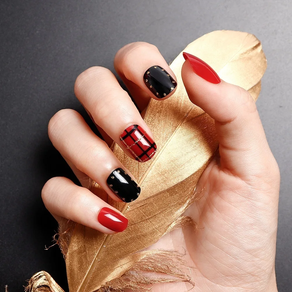 24 шт. элегантные винно-красные рождественские новогодние накладные ногти, накладные ногти, накладные ногти с клеем, стикер, накладные ногти, подарок