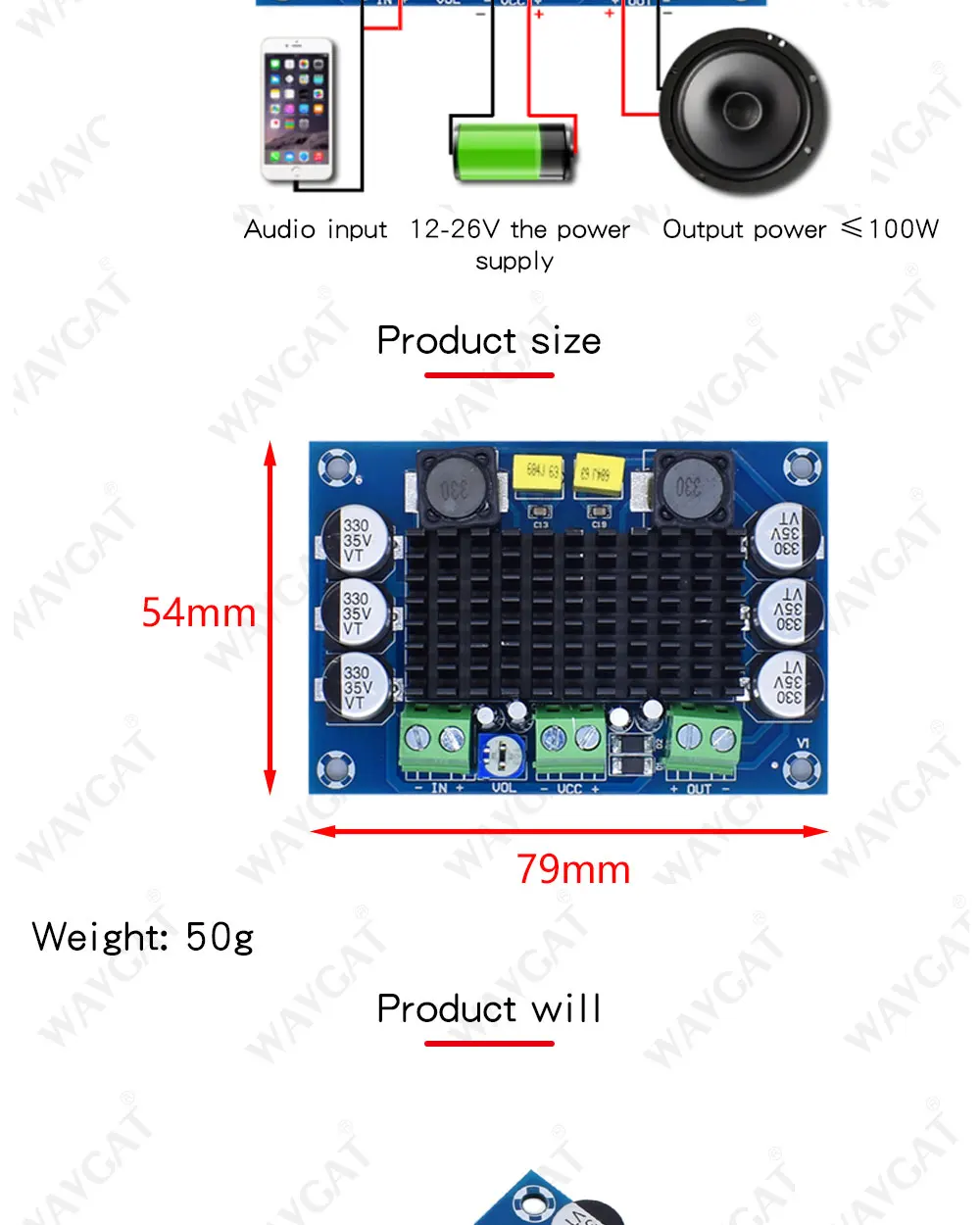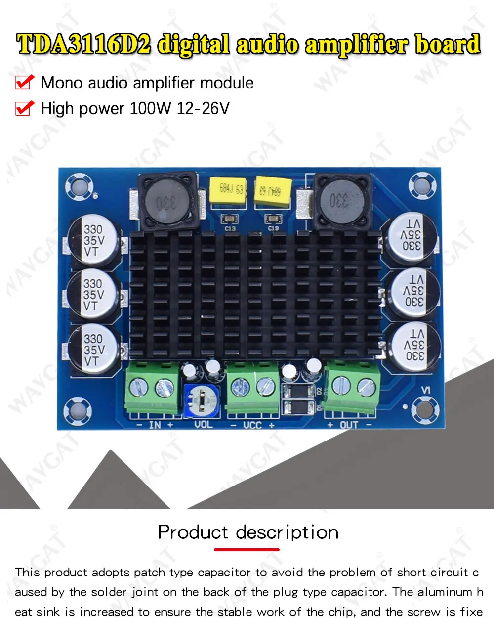 Плата усилителя сигнала WAVGATG TPA3116 D2 TPA3116DA DC 12 В 24 в 100 Вт, одноканальный цифровой мощный аудио усилитель, плата TPA3116D2 Большой Емкость платы