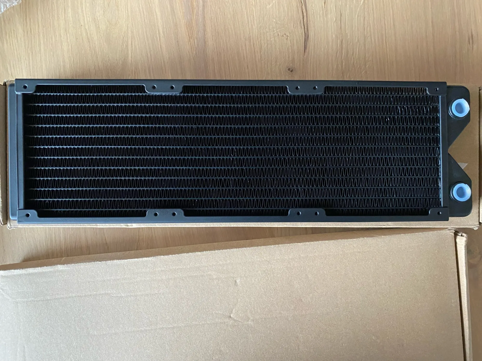 Хороший радиатор по хорошей цене. Кадры не идеальны, они полностью покрыты медью, и никто никогда не поймет, что вентиляторы не идеальны. Нужно проверить их в цикле, но они выглядят хорошо и доставка была быстрой! Менее 2 недель.