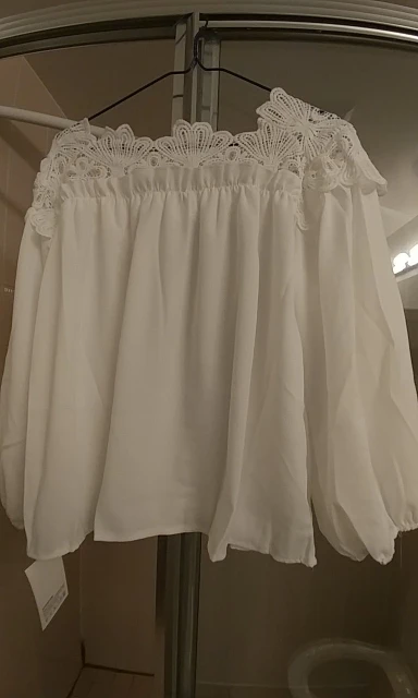 Вещь просто УЖАСНАЯ!!! Во-первых, на картинке у изделия рукав длинный, на самом деле рукав чуть ниже локтя и сделан большим фонарем на резинке, что смотрится ужасно. Пройма рукава скроена неправильно, из-за чего под мышками все тянет. Вдоль боковых швов торчат нитки. На одном рукаве треть оверлока не пришита. Горловина кружева сделана совсем не такой как на картинке, в середине выреза высокое кружево, которое падает вперед. Изделие широкое и очень короткое, смотрится отвратительно. Ткань синтетическая не тянется. Магазину ставлю 2 звезды за обман при продаже и отправке брака. Вещь выкинула, так как даже в ателье с ней ничего не сделаешь