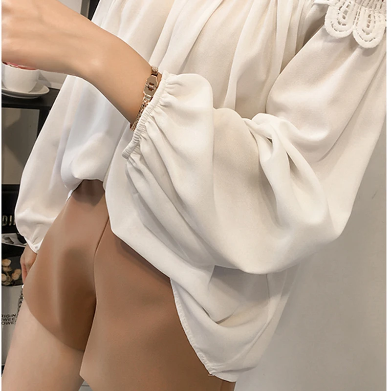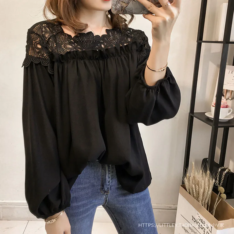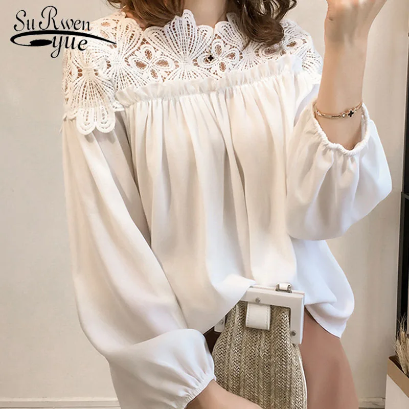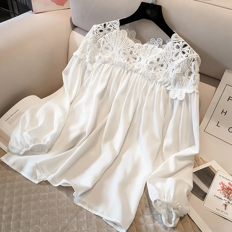 Женская кружевная блузка, повседневная винтажная блузка с длинным рукавом, 2021, D84 30