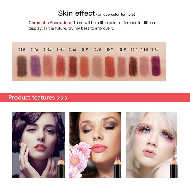 NICEFACE 12 видов цветов/набор карандашей для губ, стойкие пигменты, карандаш для губ, Макияж для губ, увлажняющие инструменты для макияжа губ TSLM2