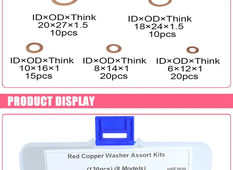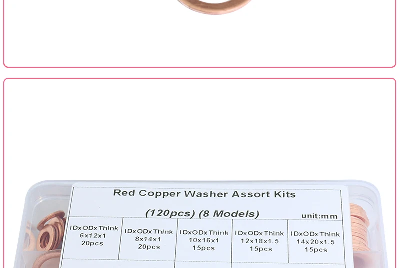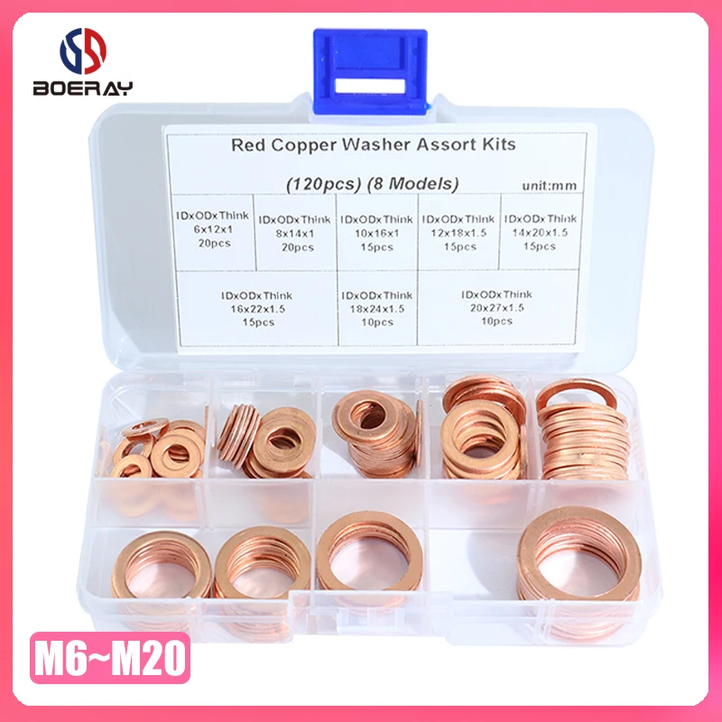 120 шт. Профессиональный M6 toM20 Ассорти медная шайба прокладка Набор плоский