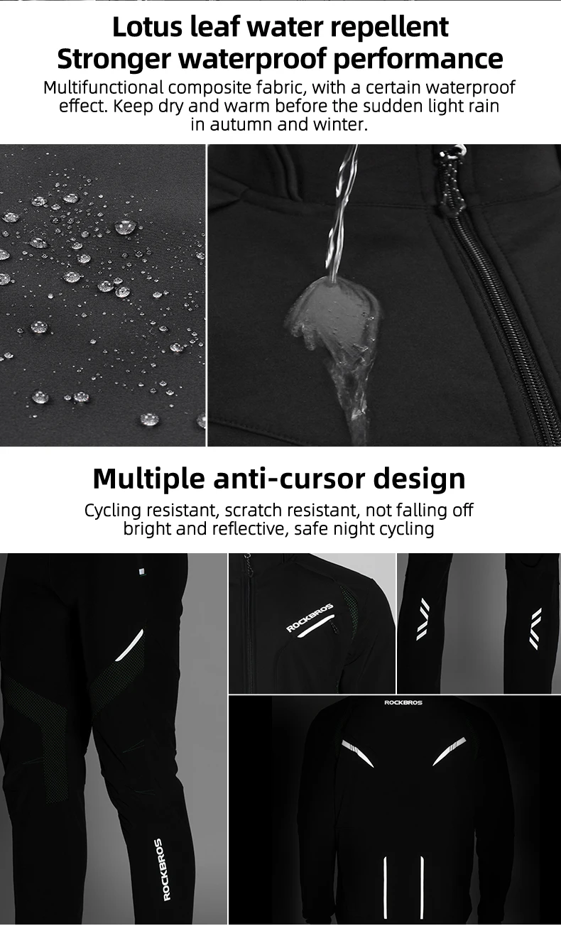 ROCKBROS комплект одежды для велоспорта, зимние теплые флисовые брюки, непромокаемые ветрозащитные светоотражающие велосипедные Джерси, комплект для мужчин и женщин, спортивная одежда