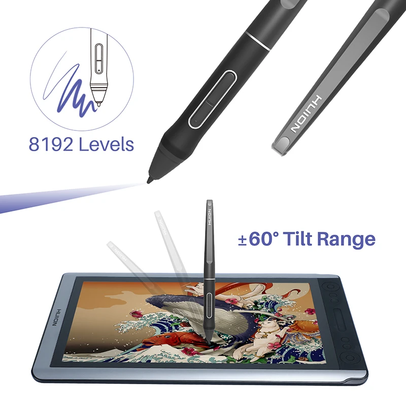 Графический планшет HUION Kamvas 16 со стилусом, 15,6 дюйма, 8192 уровня нажатия