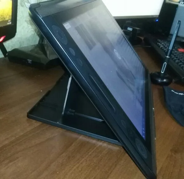 Всё пришло вовремя, вся комплектация была на месте, вместе с подставкой. С подключением проблем не возникло, нужно было только переходник купить DVI - VGA. Планшет в основном предназначен для рисования, но также можно использовать как дополнительный монитор. Есть настройка дисплея - на нижней круглой панели с кнопками длительное нажатие на среднюю кнопку. Планшетом доволен.