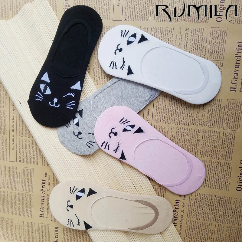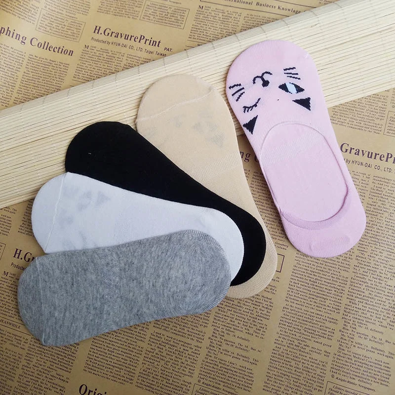 Теплые и удобные хлопковые носки с котом из бамбукового волокна для девочек и женщин, низкие невидимые цветные для девочек и мальчиков, 1 пара = 2 шт., WS114