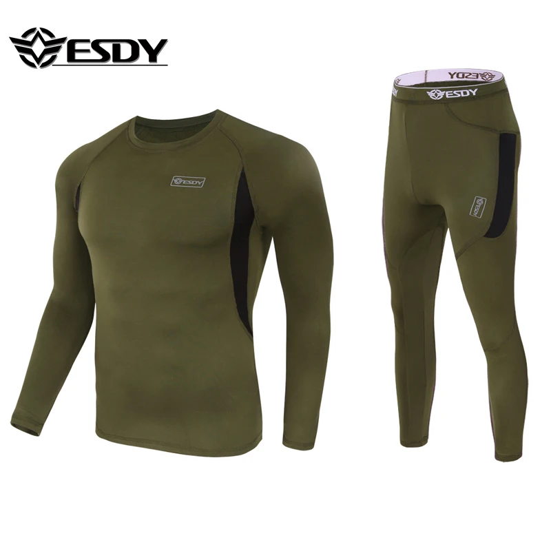 Уличное мужское флисовое термобелье, комплекты, тактические тренировочные эластичные облегающие быстросохнущие спортивные костюмы с длинными рукавами, рубашка и штаны