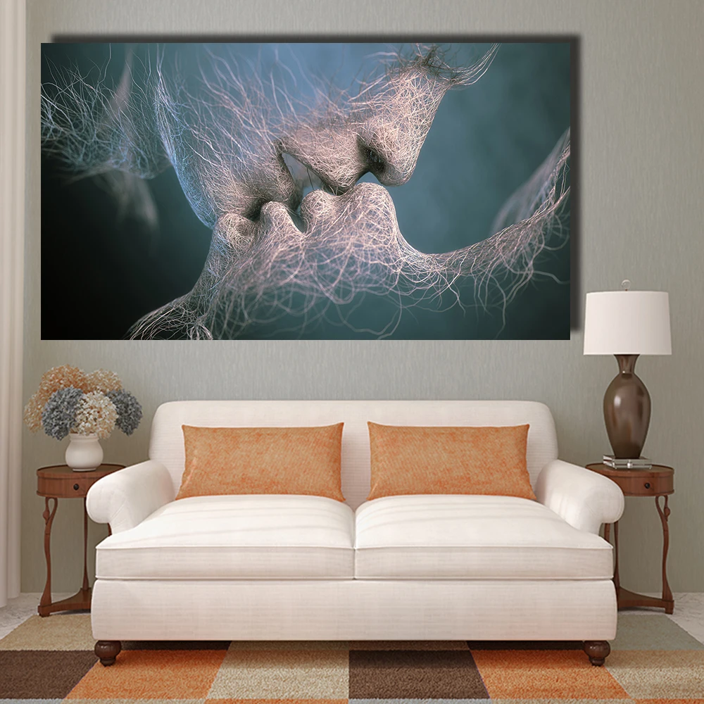 QKART настенные картины для гостиной любовь поцелуй Картина маслом на холсте стена художественные плакаты и принты