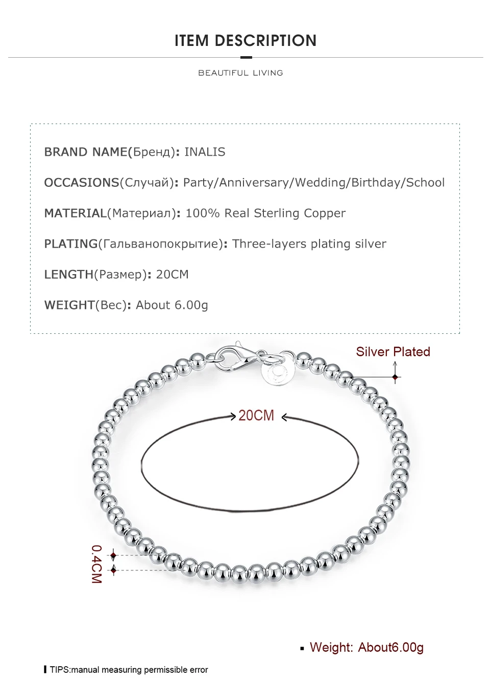 Браслет-цепочка INALIS с попкорном унисекс, сферический посеребренный браслет с бусинами, простой дизайн, Модная бижутерия, подарок другу