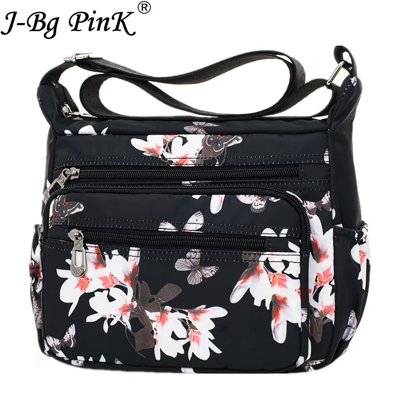J-BG-розовые дизайнерские дамские сумочки, женские водонепроницаемые нейлоновые сумки через плечо с цветочным принтом бабочки в стиле ретро