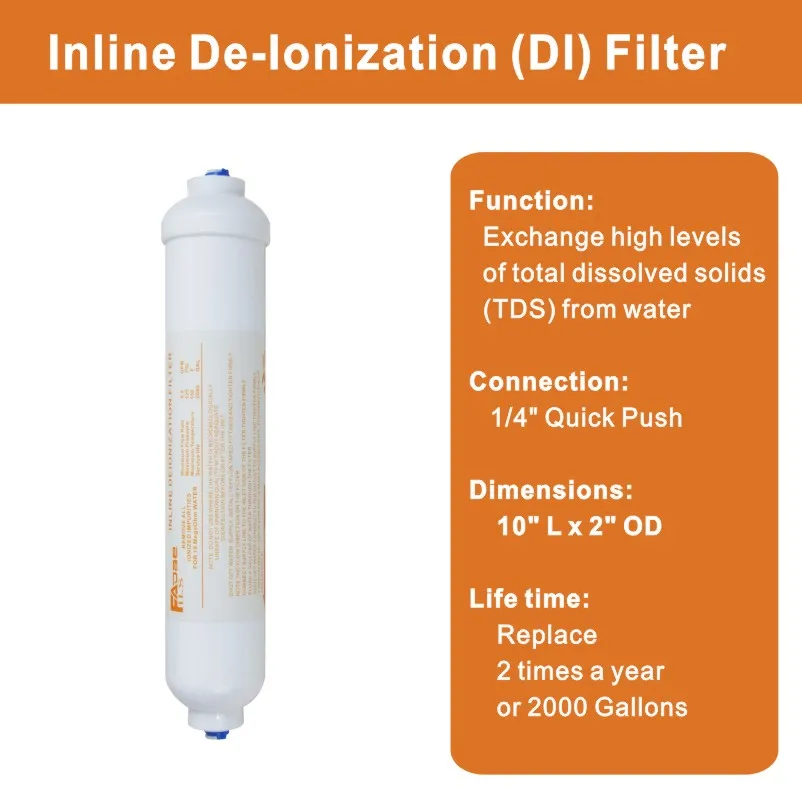 Встроенный деионизация фильтр для воды RO очиститель Замена DI Смешанная кровать смолы фильтры 10 "x 2" Dia. 1/4 дюймовый Быстрый толчок