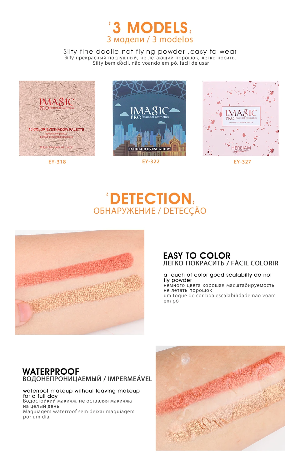 Новое поступление, очаровательные тени для век IMAGIC, 16 цветов, палитра для макияжа, матовые мерцающие пигментированные тени для век