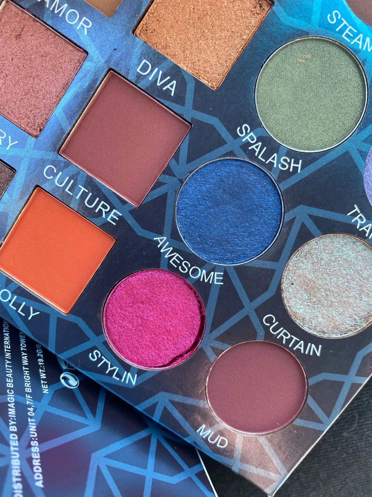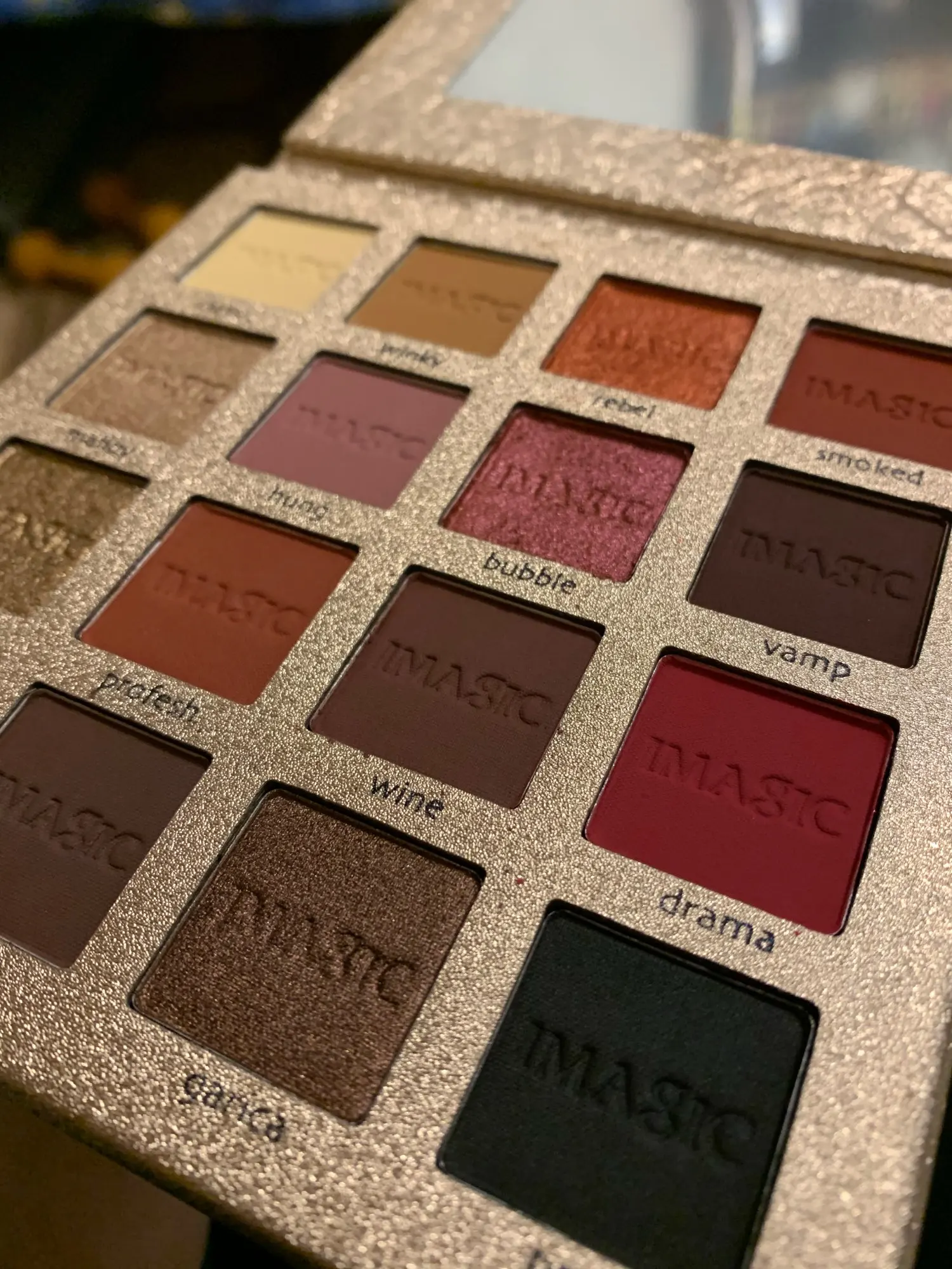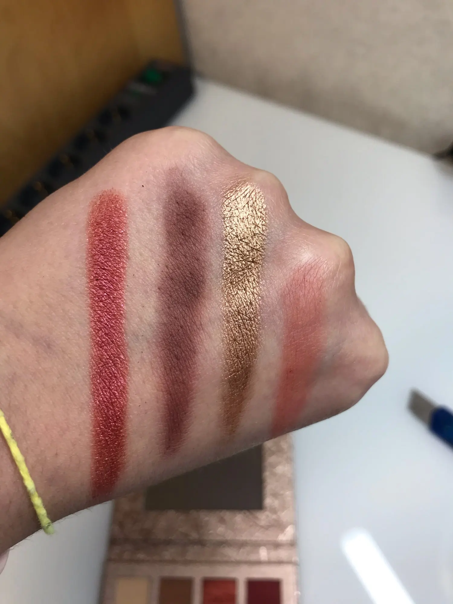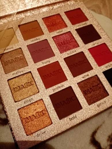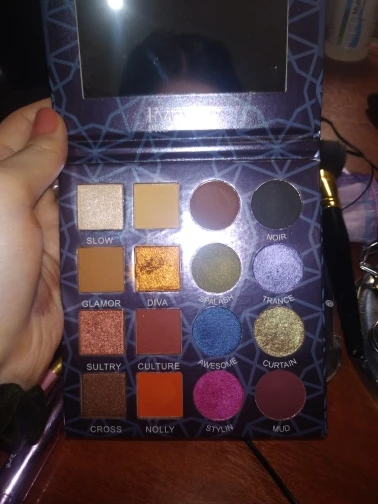 Палетка ооочень пигментированная, цвета насыщенные хорошо тушуются, шимерные матовые, с металлическим блеском оттенки. В подарок ещё кисть для теней прислали, очень приятно. Рекомендую визажиста.