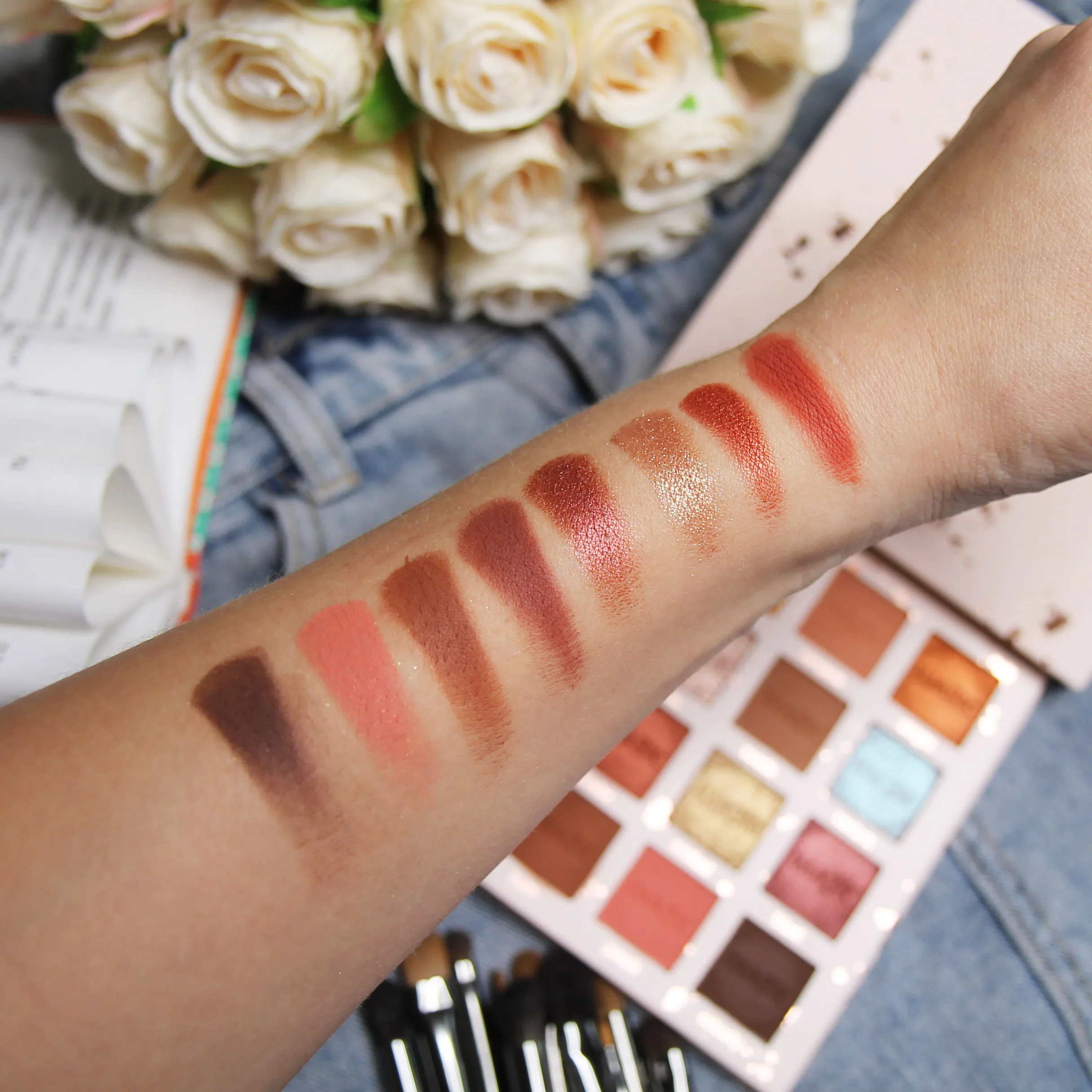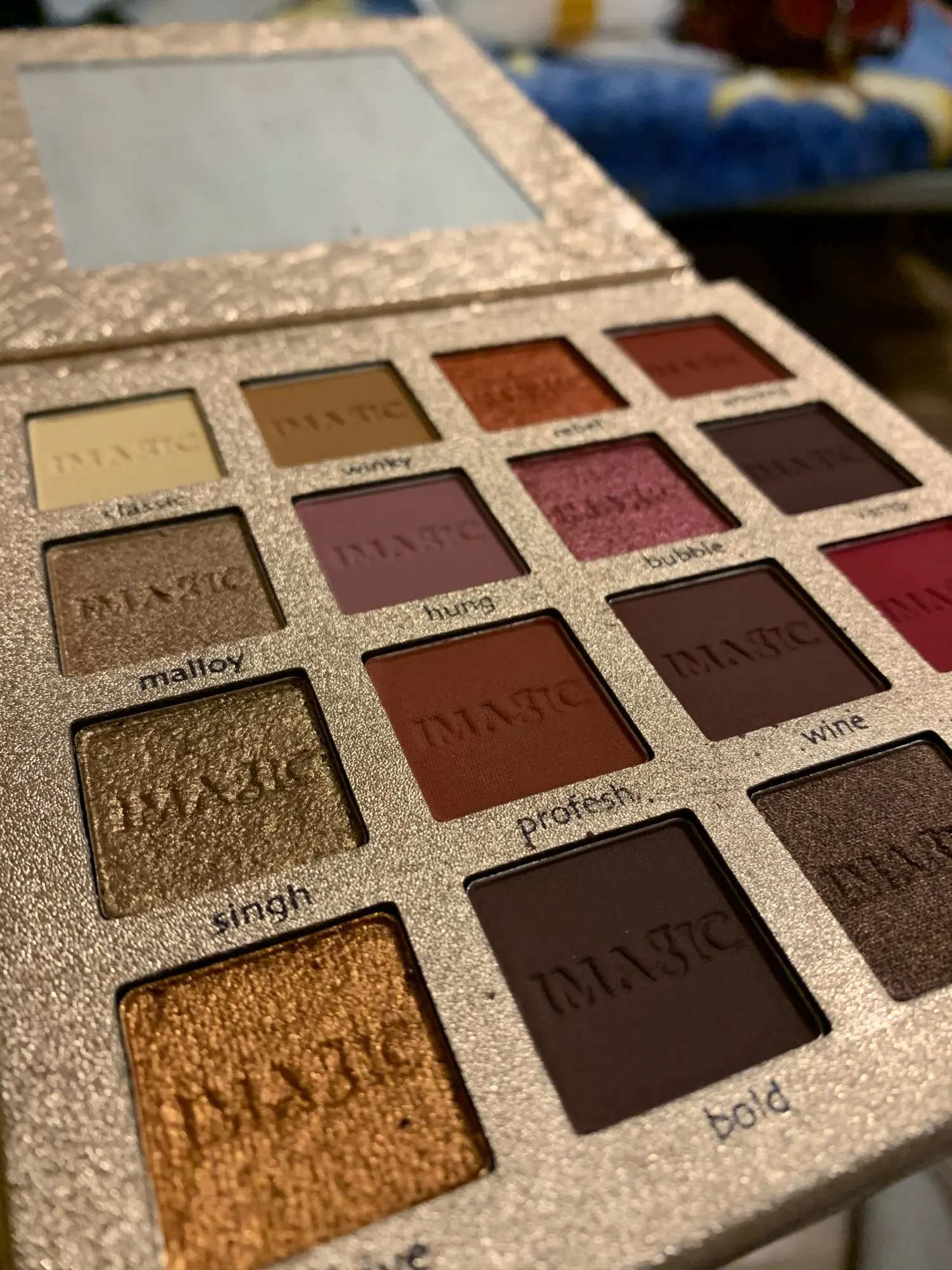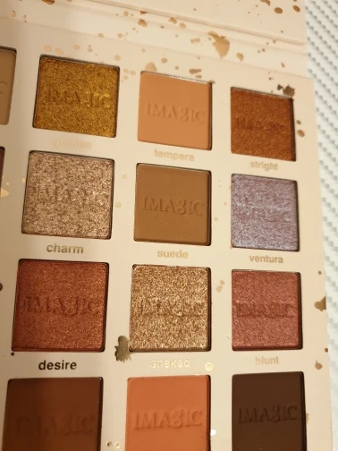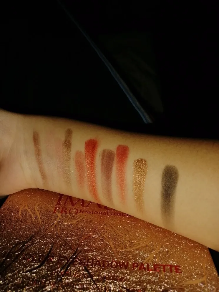 Палетка ооочень пигментированная, цвета насыщенные хорошо тушуются, шимерные матовые, с металлическим блеском оттенки. В подарок ещё кисть для теней прислали, очень приятно. Рекомендую визажиста.