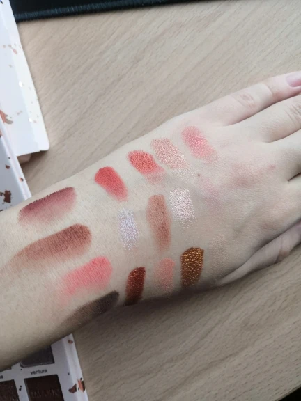 Я в шоке от этих теней и продавца. Доставка заняла всего неделю!!! 15 заказ был оплачен, а 24 уже был на почте. Сама палетка упакована на совесть. В подарок шла "кисточка". Качество палетки отличное, ничего не разбилось и выглядит презентабельно. Оттенки шикарные, на свотчах нанесены пальцем в один слой, без базы, так что пигментация отличная. Подбор оттенков тоже я считаю очень удачным: и на повседневку, и вечерний макияж и поэкспериментировать с цветами можно. ❤️Я довольна, огромное спасибо продавцу❤️