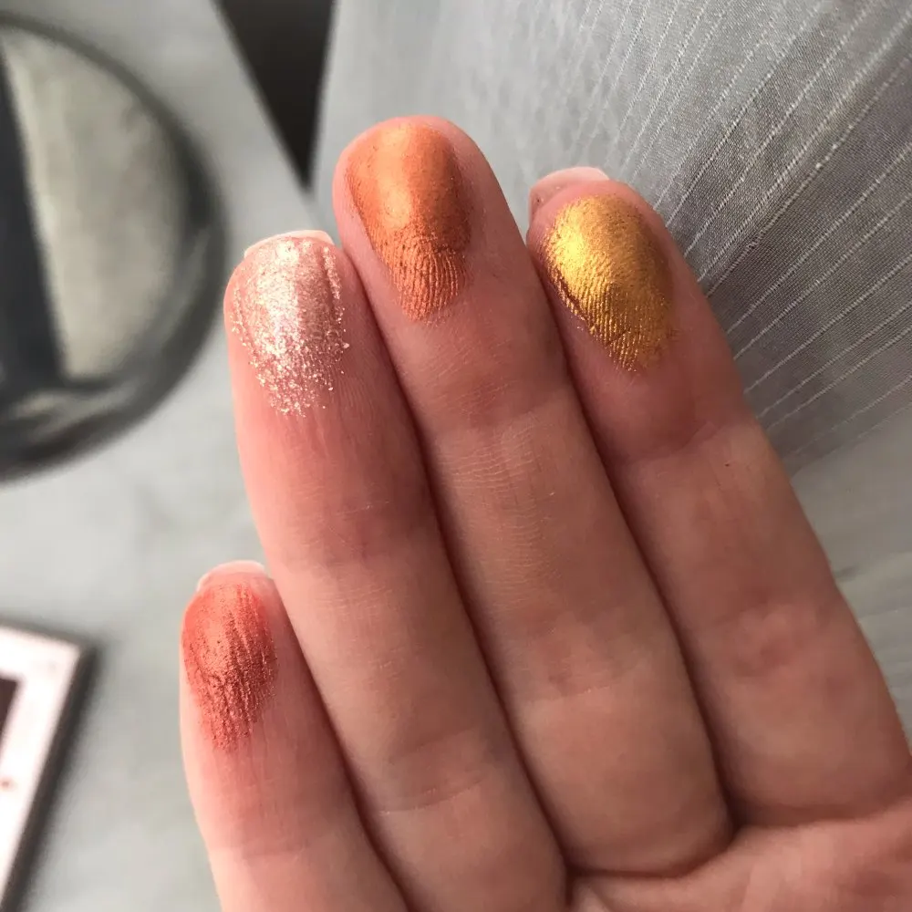 Пришли быстро, очень красивые. На базу никс отлично ложатся. Правда некоторые шиммерные оттенки лучше всего наносить пальцами, а не кистями. Оттенки супер пигментированные. Даже с кистью практически не осыпаются. Рекомендую к покупке!