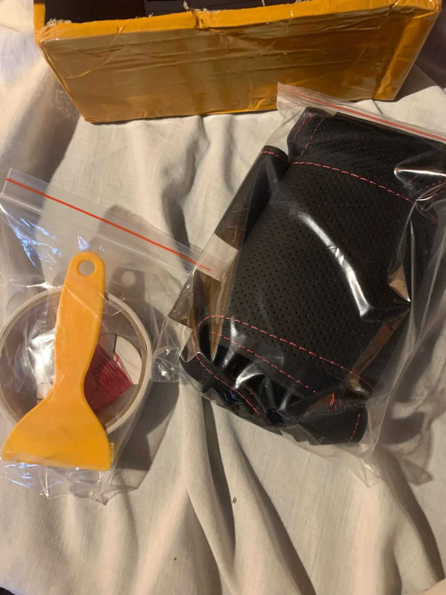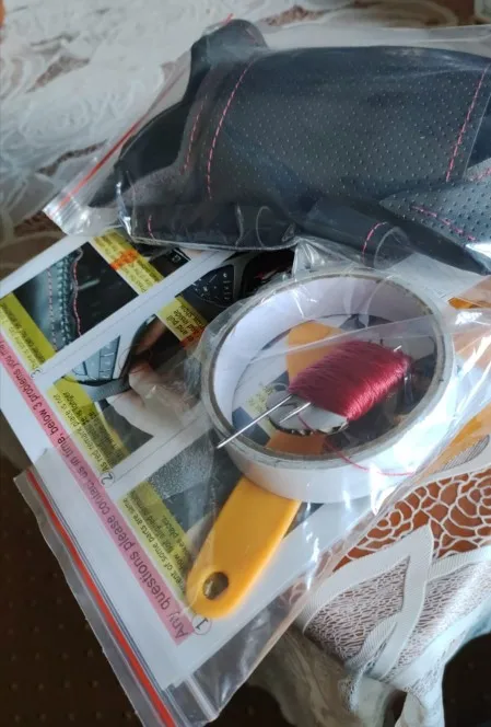 Посылка включает в себя: кожаный чехол, иглу, нить, инструкции по установке, другие швейные инструменты.