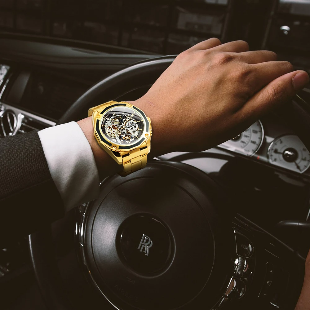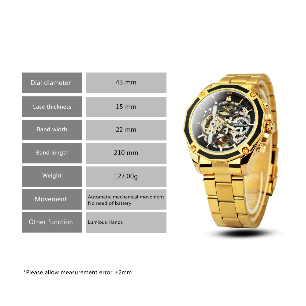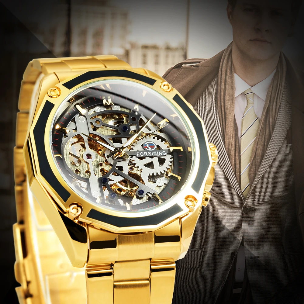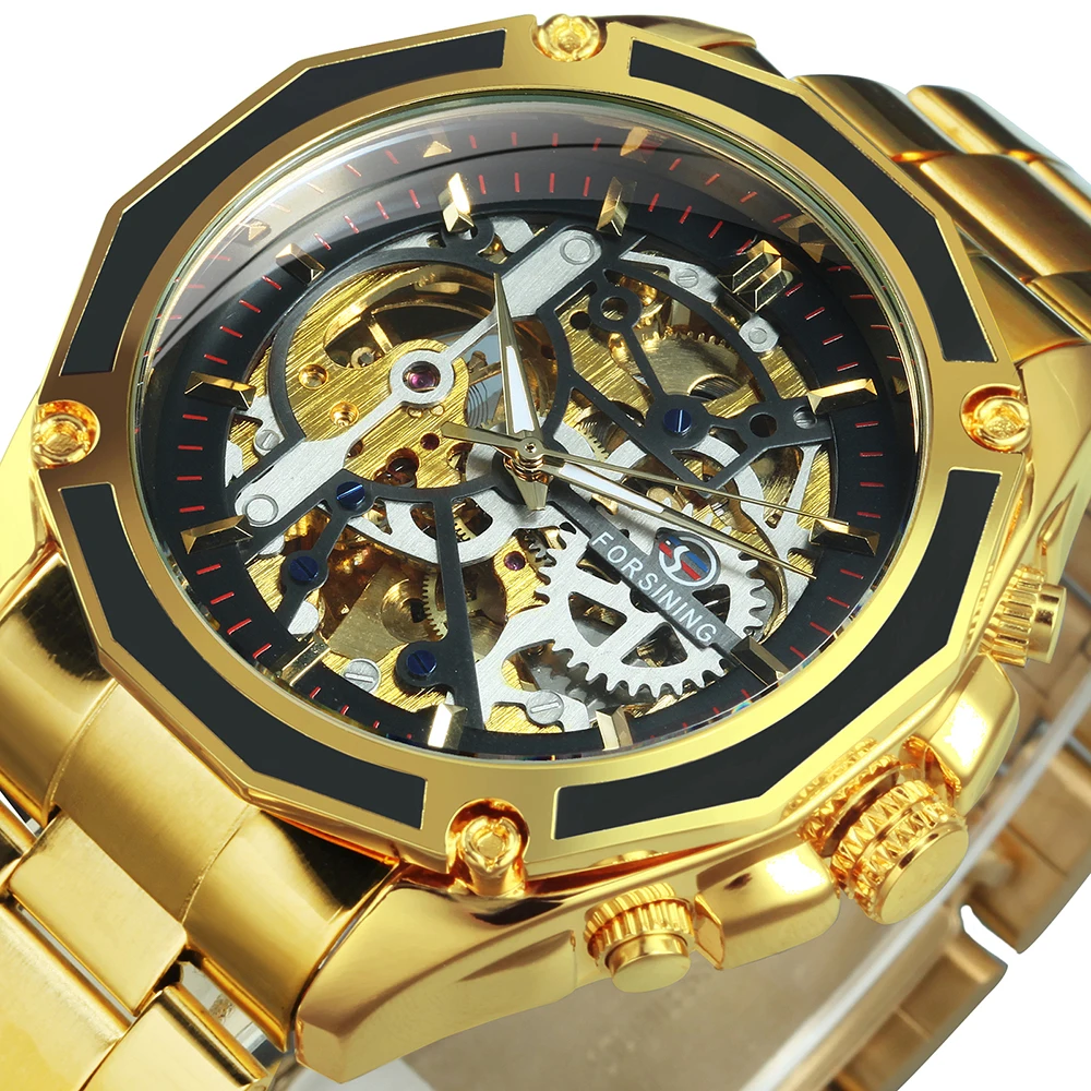 Часы наручные Forsining Мужские механические, модные брендовые Роскошные автоматические, в стиле стимпанк, из нержавеющей стали