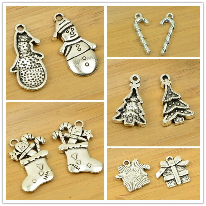 Рождественская елкачулокподарокСнеговикСанта-Клаусшапка Санта-Клаусашляпа в форме сплава DIY Очаровательное украшение с кулоном старинное Серебряное украшение
