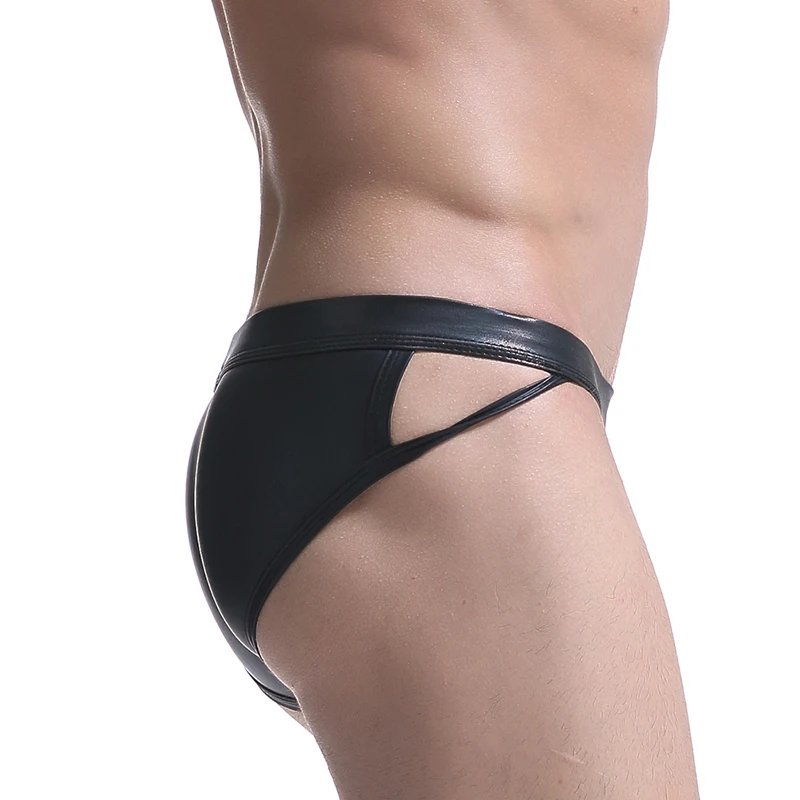 Кожаное Мужское нижнее белье Эротические трусики, мужское нижнее белье с мешочком для пениса, мужские трусы бикини, трусы для Сисси, гей-трусы, мужское нижнее белье