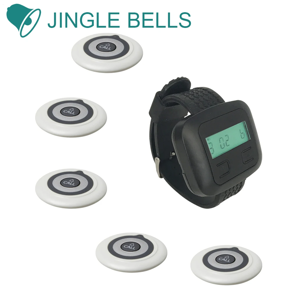Беспроводная система вызова JINGLE BELLS для кафе, гостиницы, офиса, 3 кнопки + 1 приемник часов, пейджер для ресторана, зуммер 433MH