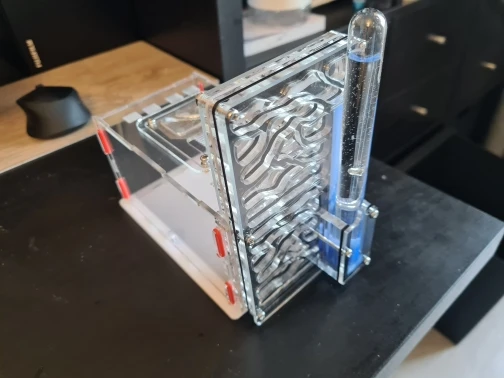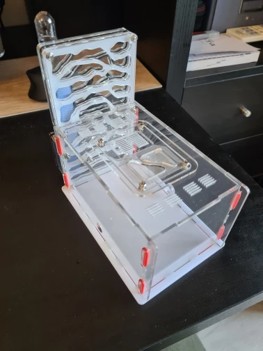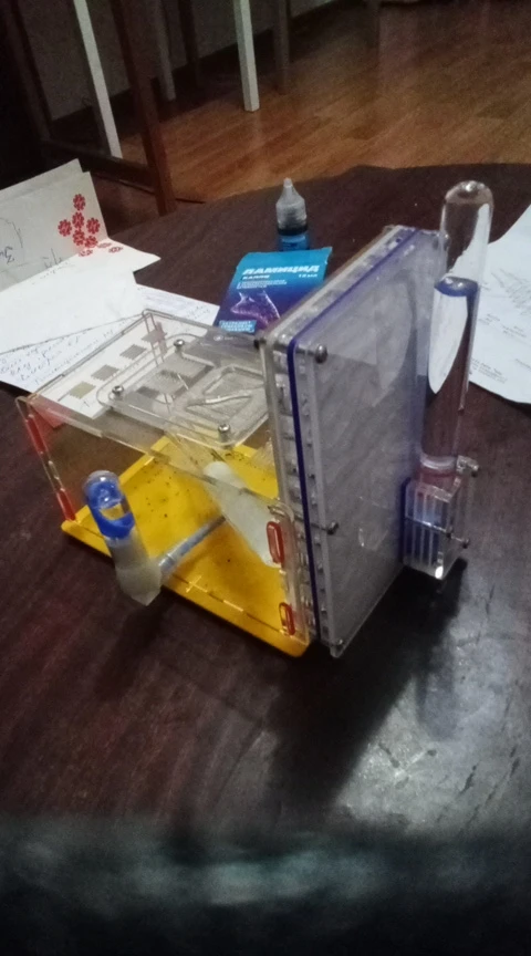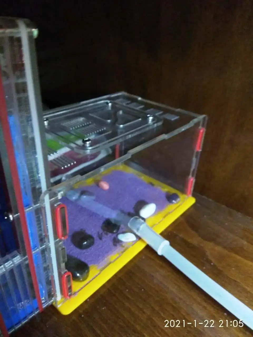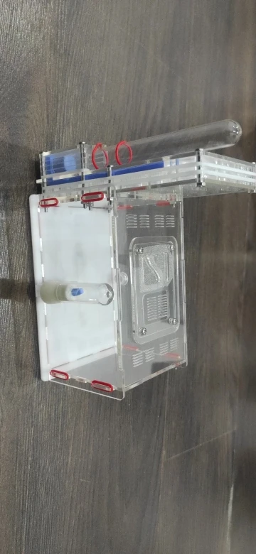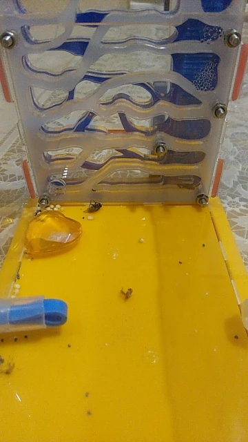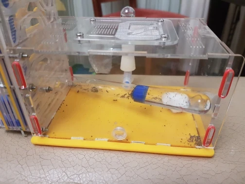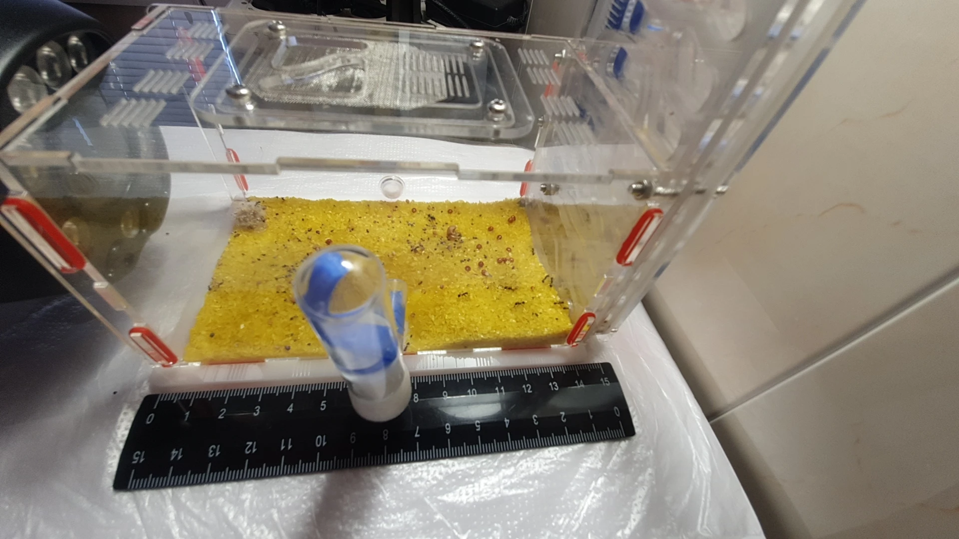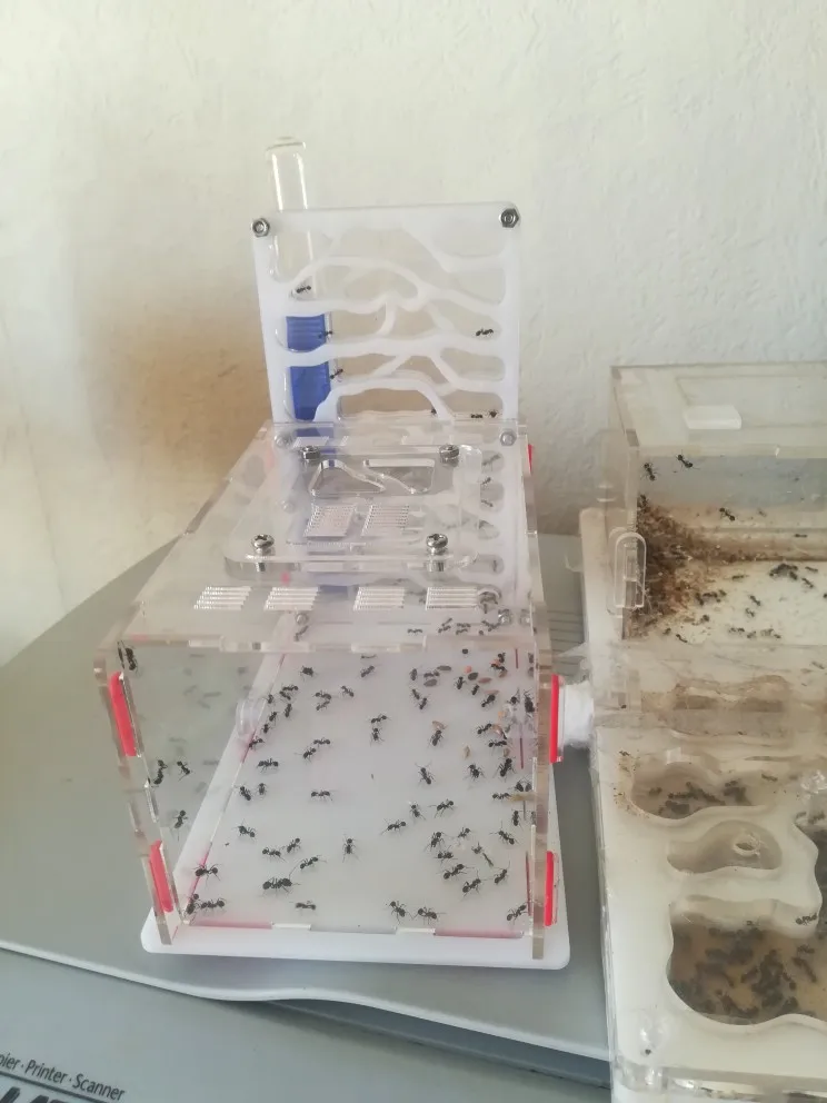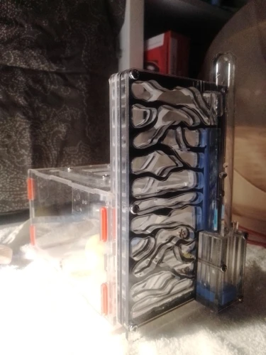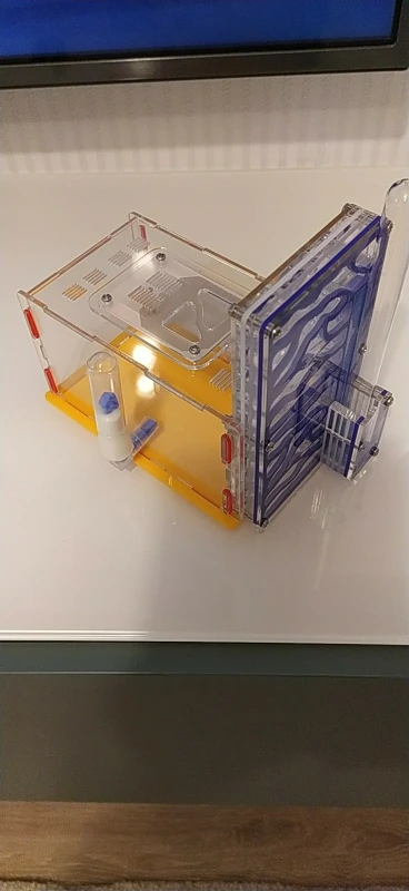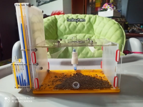 Очень доволен моим муравьиным гнездом! Легко построить, потребовал 30 мин. Althoug u не уверен, что это хорошее гнездо для королевы, это хороший внешний мир. Я могу прикрепить темную бумагу к размеру, чтобы гнездо было темно. Вы можете легко подключить его, поэтому я очень доволен.