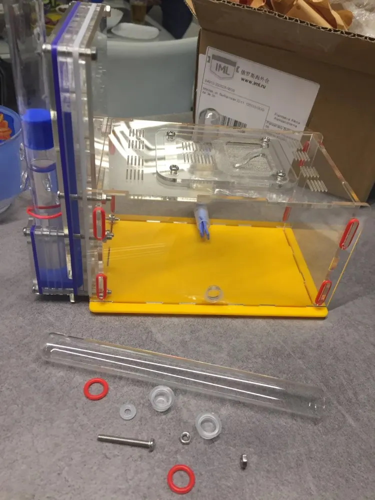 Формикарий отлично собирается. Качество всех деталей на уровне. Вызвал только небольшое недоумение масштаб конструкции, ибо на фотографиях он кажется крупнее. Упаковано все очень хорошо, даже стеклянные колбы в три слоя пупырки. Пришло весьма оперативно, две недели до Чувашии. Продавца рекомендую.