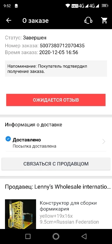 Пришёл заказ через неделю. доставка из России. Всё в комплекте, собрали быстро, ничего сложного. Ребенок доволен. Товар и магазин рекомендую. С продавцом не общался.