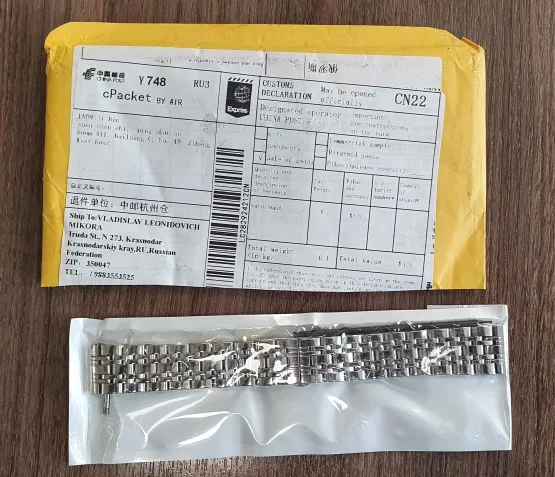 заказывал браслет 18мм. Пришло быстро, но браслет не подходит к часам, посадочное место чуть шире, пришлось спиливать надфилем и заполировывать. В комплекте идут штырьки и инструмент для вставки браслета.
