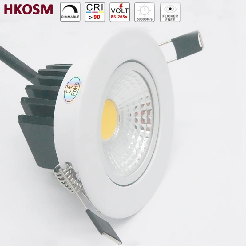 Приглушаемый Светодиодный точечный светильник, потолочная лампа направленного света с белым корпусом, 3 Вт, 5 Вт, 7 Вт, 9 Вт, 12 Вт, 85-265 в, Встраиваемый светодиодный точечный светильник
