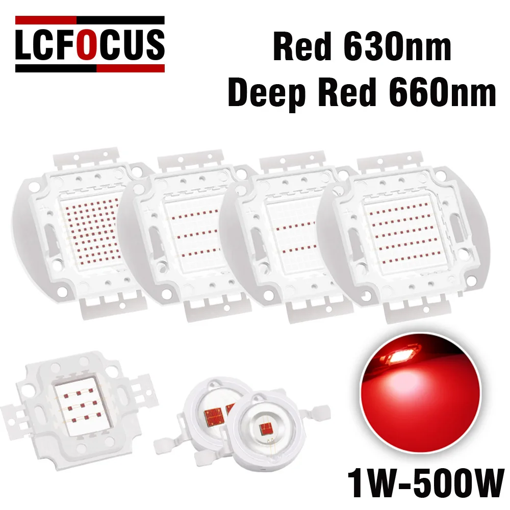 Высокая мощность 1 Вт 3 Вт 5 Вт 10 Вт 20 Вт 30 Вт 50 Вт 100 Вт 200 Вт 300 Вт 500 Вт Светодиодный светильник для выращивания 660нм 630нм темно-красный завод чип COB для DIY светодиодный светильник для выращивания