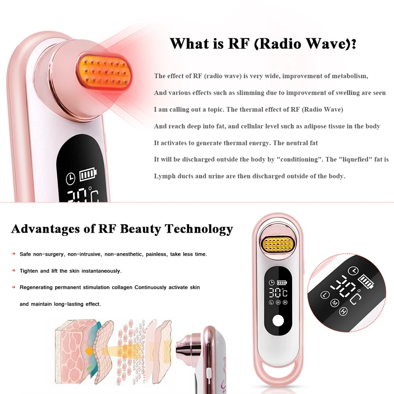Старение влияет на наше тело, подвижность и внешний вид. Тем не менее, Муравьиное старение возможно в настоящее время с передовой технологией по уходу за кожей. Это устройство содержит специальное RF лечение, которое поможет улучшить свободную кожу и сделать ее крепкой, плотной, молодой и яркой. RF имеет две основные функции: Мгновенный укрепляющий эффект и долгосрочный эффект регенерации.