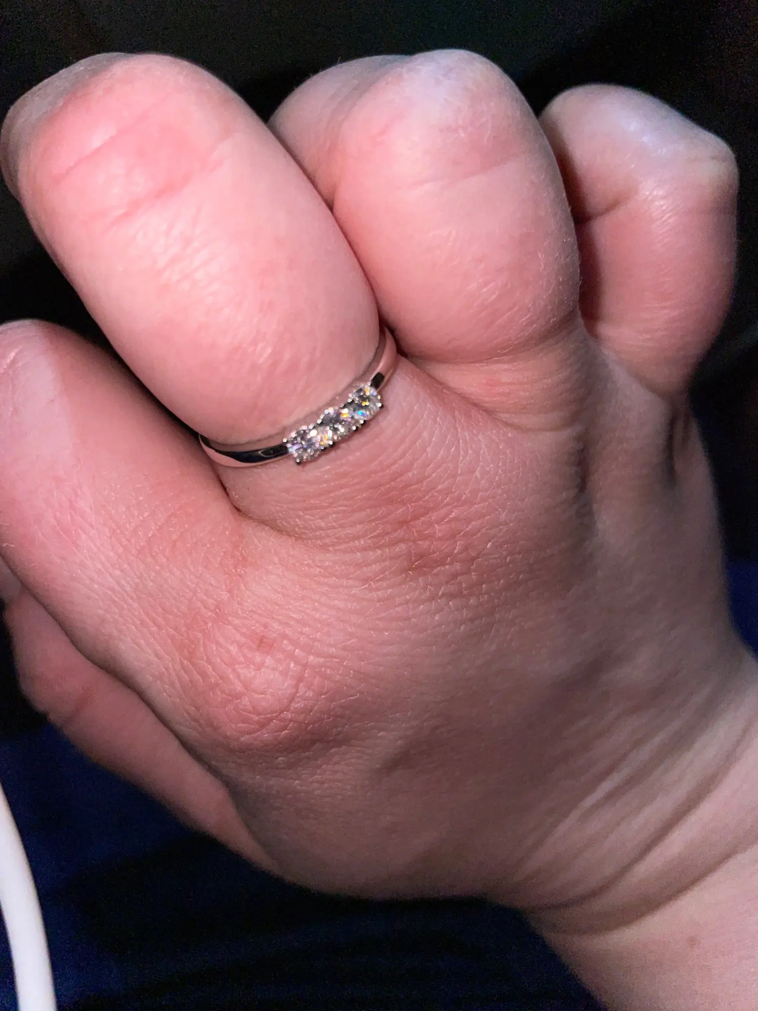 Красивое кольцо, камни играют как бриллиант. Тест прошёл камень Муассанит. Спасибо большое продавцу за быструю доставку.