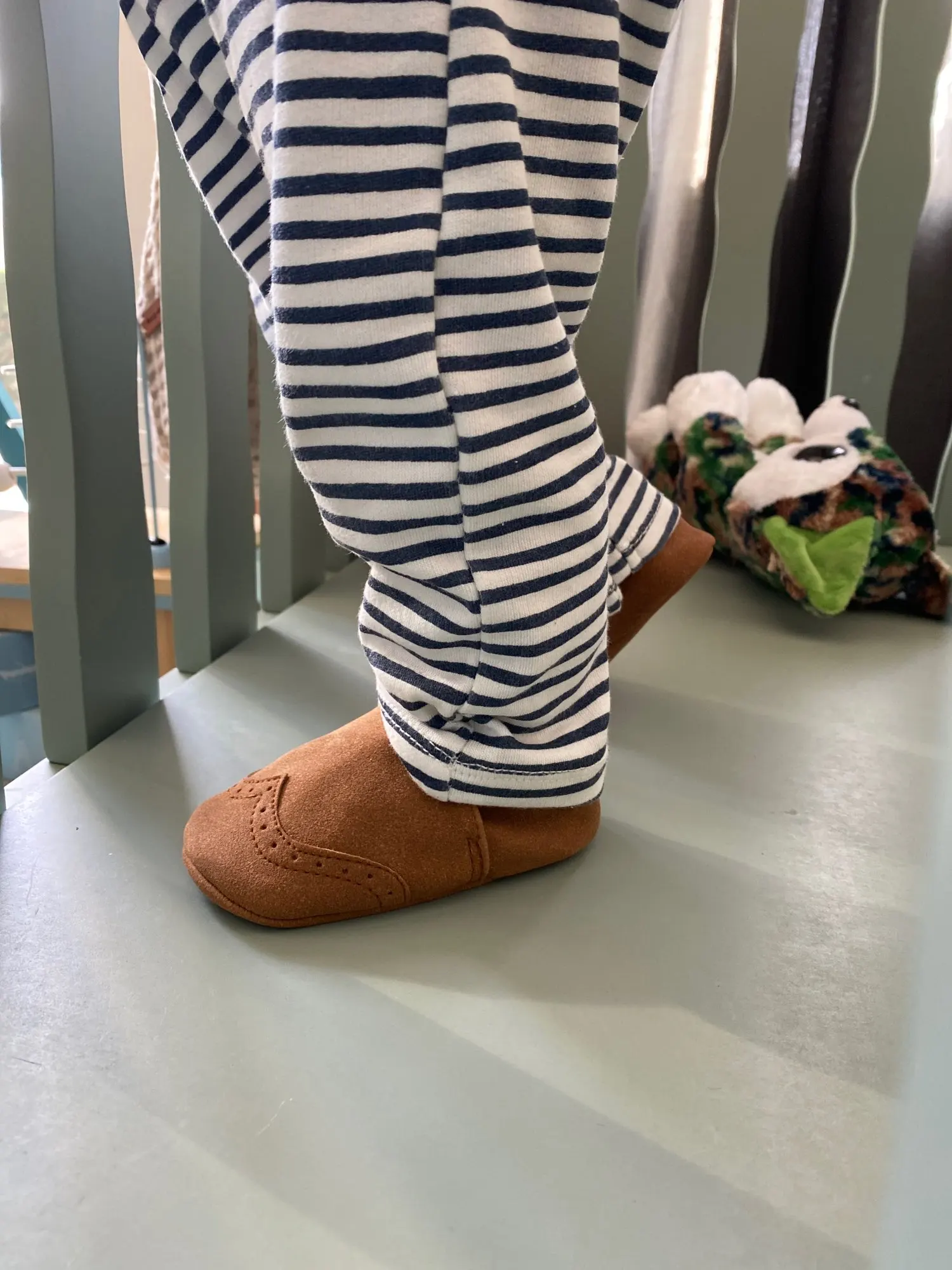 Тапочки хорошие. Цвета тоже. Только с нижней стороны я вижу, что они не стоят слишком сильно на ноге ребенка повреждения