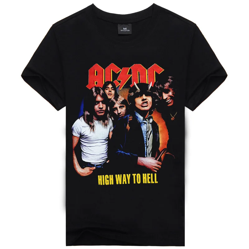Rocksir 2017 группа серии Мужская футболка ACDC 3D персонаж печати топ тройники homme high way to hell Мода Рок Стиль черная футболка