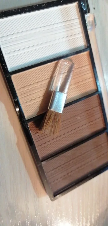 Пигментация средняя. Вложенная кисть сильно пылит и переносит меньшую часть — лучше взять крупную мягкую кисть. Растушевывается средне, но терпимо. Для коррекции кремового контуринга подойдет на 100%