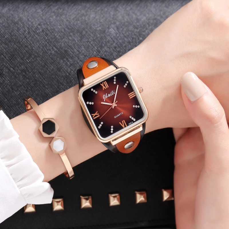 Женские кварцевые часы Zegarek damski Jbaili, часы с кожаным ремешком, под платье