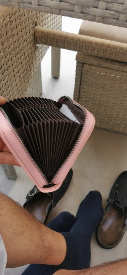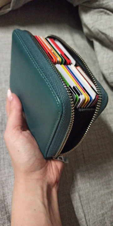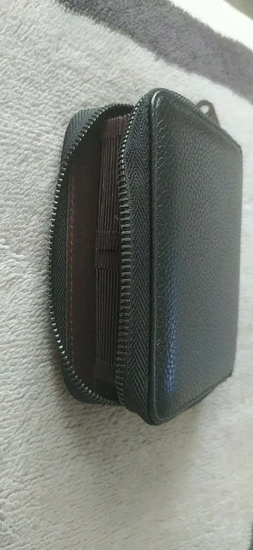 Мой любимый, получила уже давно, но только сейчас пишу отзыв. Просто сказка, вся моя "картотека" поместилась, немножко купюр можно положить. Молния холит легко, кожа приятная, +1000, спасибо продавцу.