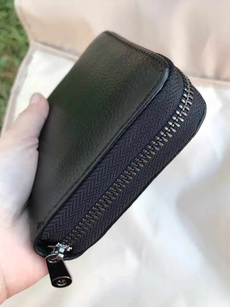 хороший кошелек. долгая доставка в Минск 2,5месяца. возможно, из-за заказа 11.11. молния работает хорошо. цвет я бы не назвала чёрным, скорее графит. в общем заказом довольна. на вопросы продавец отвечал сразу