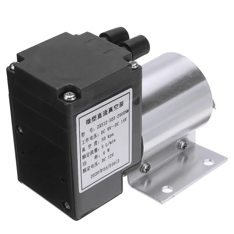 Электрический мини-вакуумный воздушный насос, всасывающий мембранный насос высокого давления, 5 лмин, 80 кПа, постоянный ток 12 В, с держателем для химической промышленности, 1 шт.