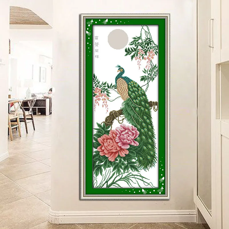 Картины для вышивки крестиком Joy Sunday, богатство и удача, напечатанные на холсте, Набор для вышивки, сделай сам, животное павлина ручной работы 14ct