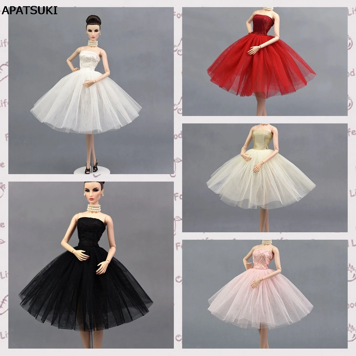 5 шт.лот, модное балетное платье для куклы Барби, цельные вечерние платья, Одежда для кукол Барби, аксессуары для кукол BJD 16