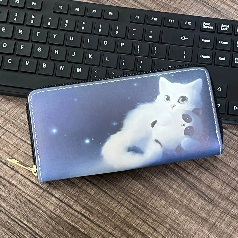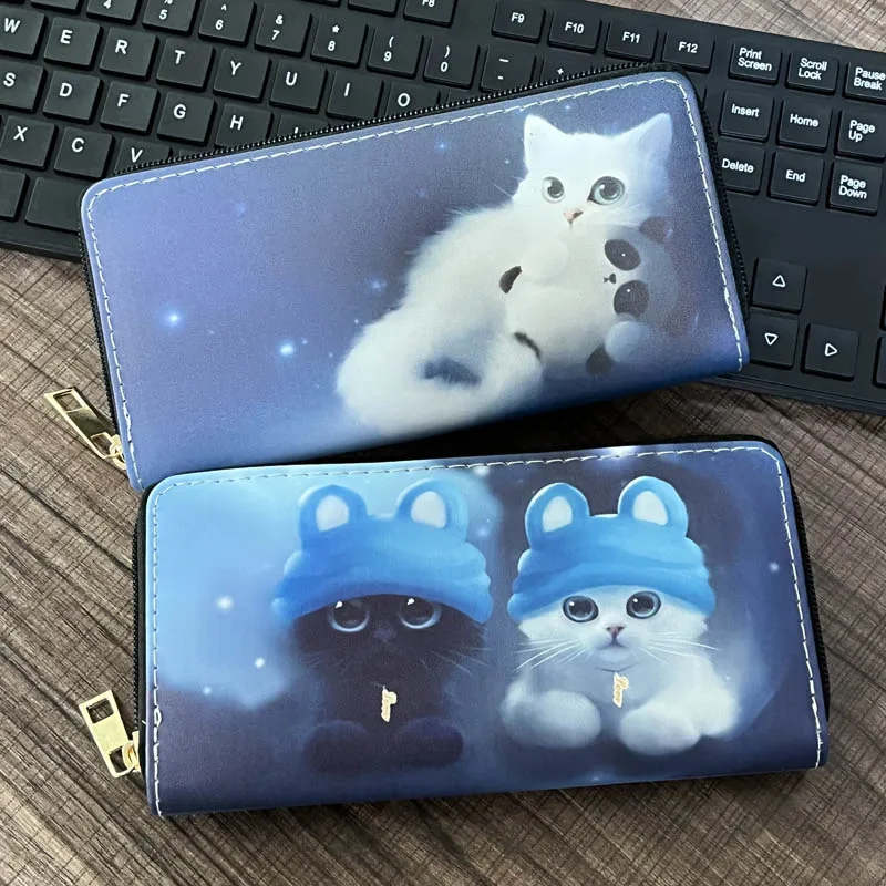 Женские кошельки, длинный клатч, женские кошельки, женские сумочки, женские сумочки, портмоне для девочек, держатель для карт, Сумка с мультяшным котом, складные бумажники, сумки