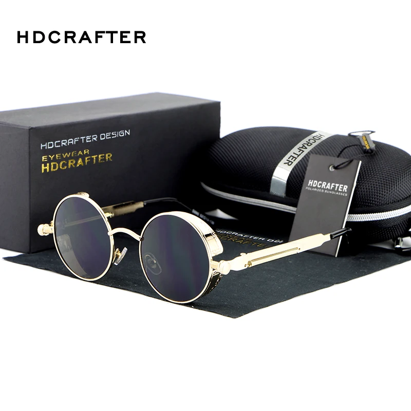 HDCRAFTER солнцезащитные очки в стиле стимпанк винтажные Ретро Мужские Женские Мужские брендовые дизайнерские круглые солнцезащитные очки в металлической оправе