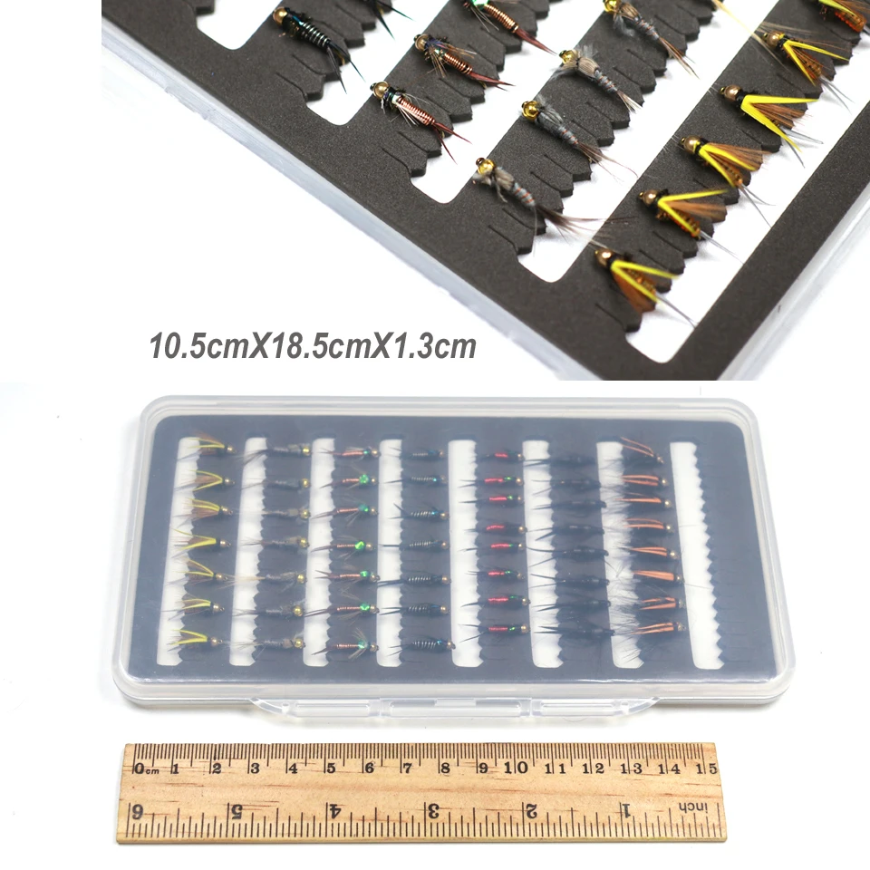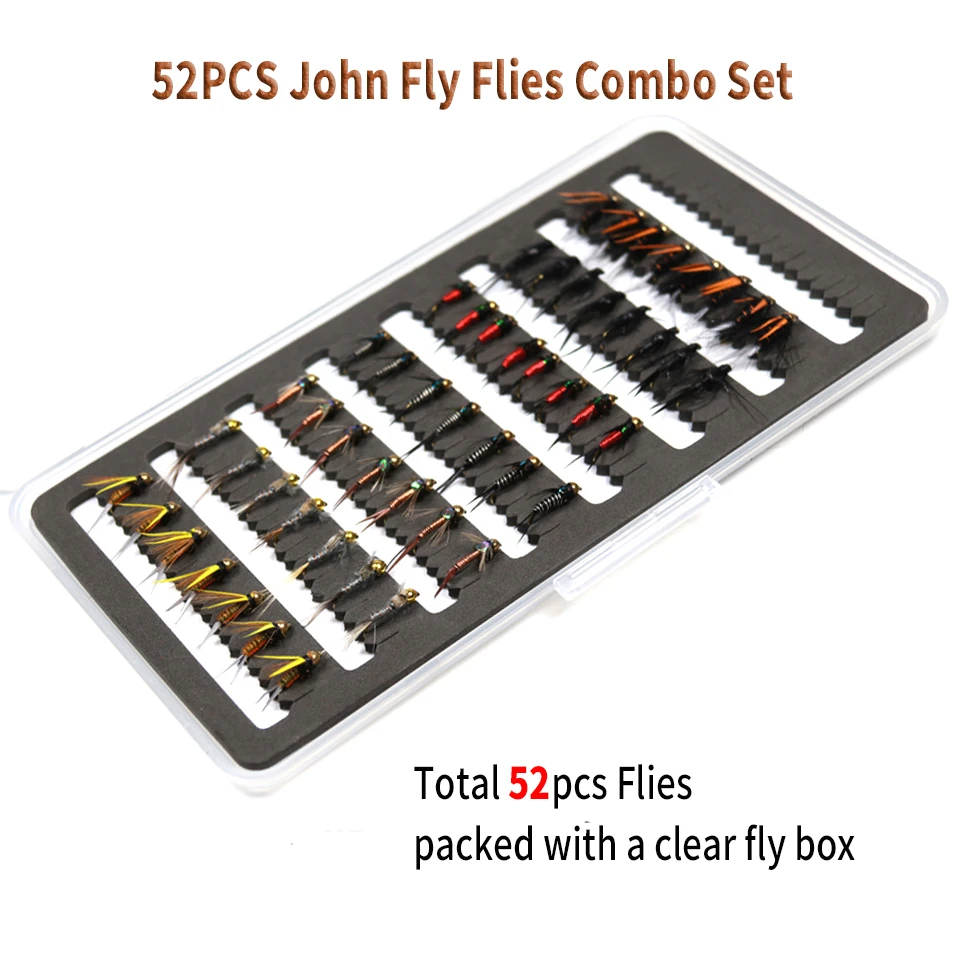 52 шт. комбинированный набор для ловли форели, мух, с ультратонкой карманной коробкой для ловли нахлыстом, латуннаяпластиковая голова, Нимфа